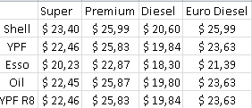 Los Precios de las Estaciones de Servicio de Bella Vista: