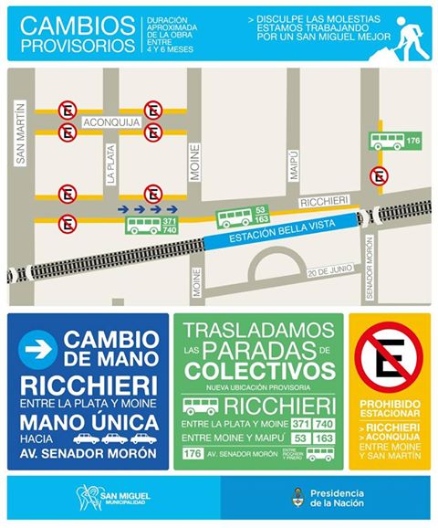 - Cambio de mano de Ricchieri entre La Plata y Moine (Ahora es sentido único hacia Senador Morón) Por lo que los vehiculos que esten circulando por moine llegando a la estacion tienen prohibido girar a la derecha.