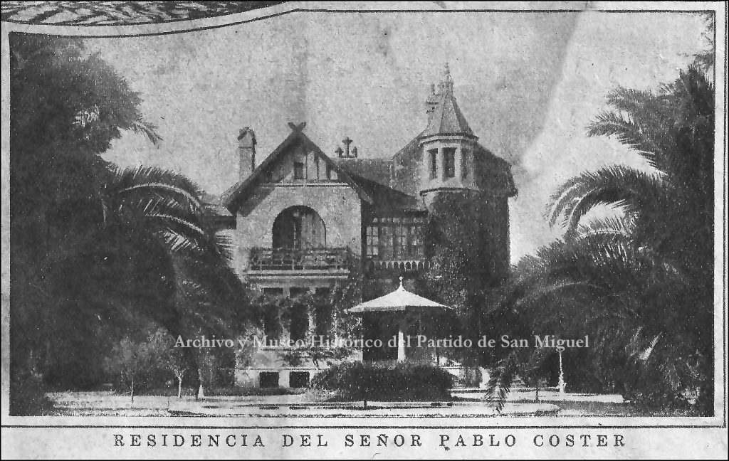 Aunque viajaba mucho por temas labolares, don Pablo se radicó en la Capital Federal, vivía en una importante propiedad sobre la calle Cerrito, próximo a la Plaza Libertad. A principios del siglo, y gracias a su amistad con Eduardo Patricio Moine,  comenzó a frecuentar el pueblo de Bella Vista.  Aquí compró unos terrenos en donde levantó su residencia de fin de semana a la que llamó «Sans Soucii».  Edificación copia exacta del reconocido Palacio diseñado por el arquitecto francés René Sargen. Delante de la edificación, había una fuente en cuyo centro afloraba un salto de agua. La rodeaba el camino de acceso a la mansión.. estaba ubicada en un manzana de 24mil metros cuadrados en la zona comprendida por la Av. Francia, Tucumán, Entre Ríos y Bourel, muy cerca del club Regatas de Bella Vista, del cual Coster era uno de sus socios y además un gran colaborador.