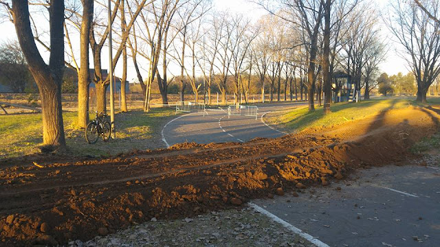 Se construyó un terraplén con tosca para que las maquinas pudiesen acceder hasta el patinodromo, se removió la pista y se retiraron los escombros, luego de eso se llevaron las maquinas y nunca mas se vieron obreros. Quedó un terraplén de aproximadamente 50cm de altura que impide la normal circulación de los ciclistas, y de distintos tipos de atletas que usan la pista para entrenar.